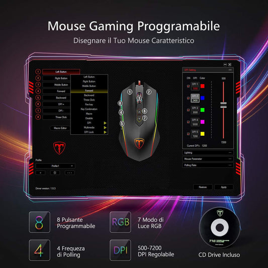 Souris Gaming Filaire RGB – Haute Précision 12400 DPI – 7 Boutons Programmables – Poids Ajustable – Ergonomique et Compatible Windows/Mac