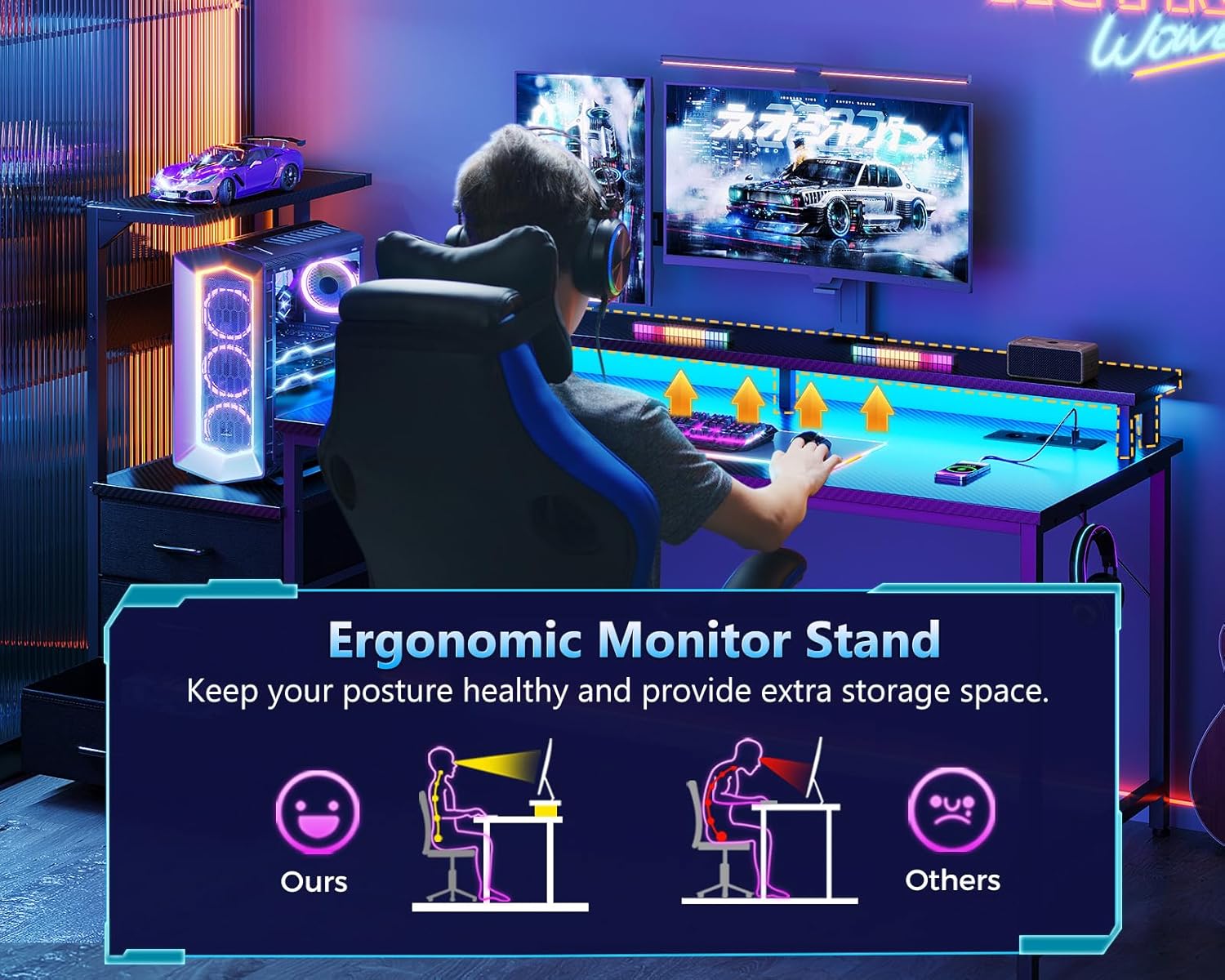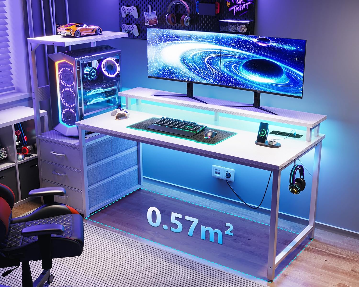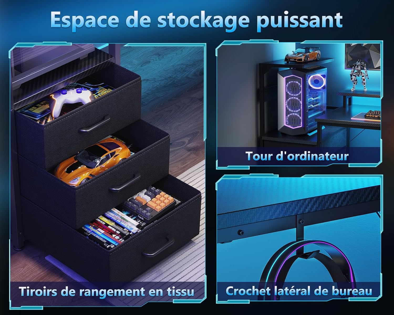 Bureau Gaming Coleshome Électrique – Éclairage LED RGB, Réversible avec Rangement et Support Écran – 140 cm – Style Moderne