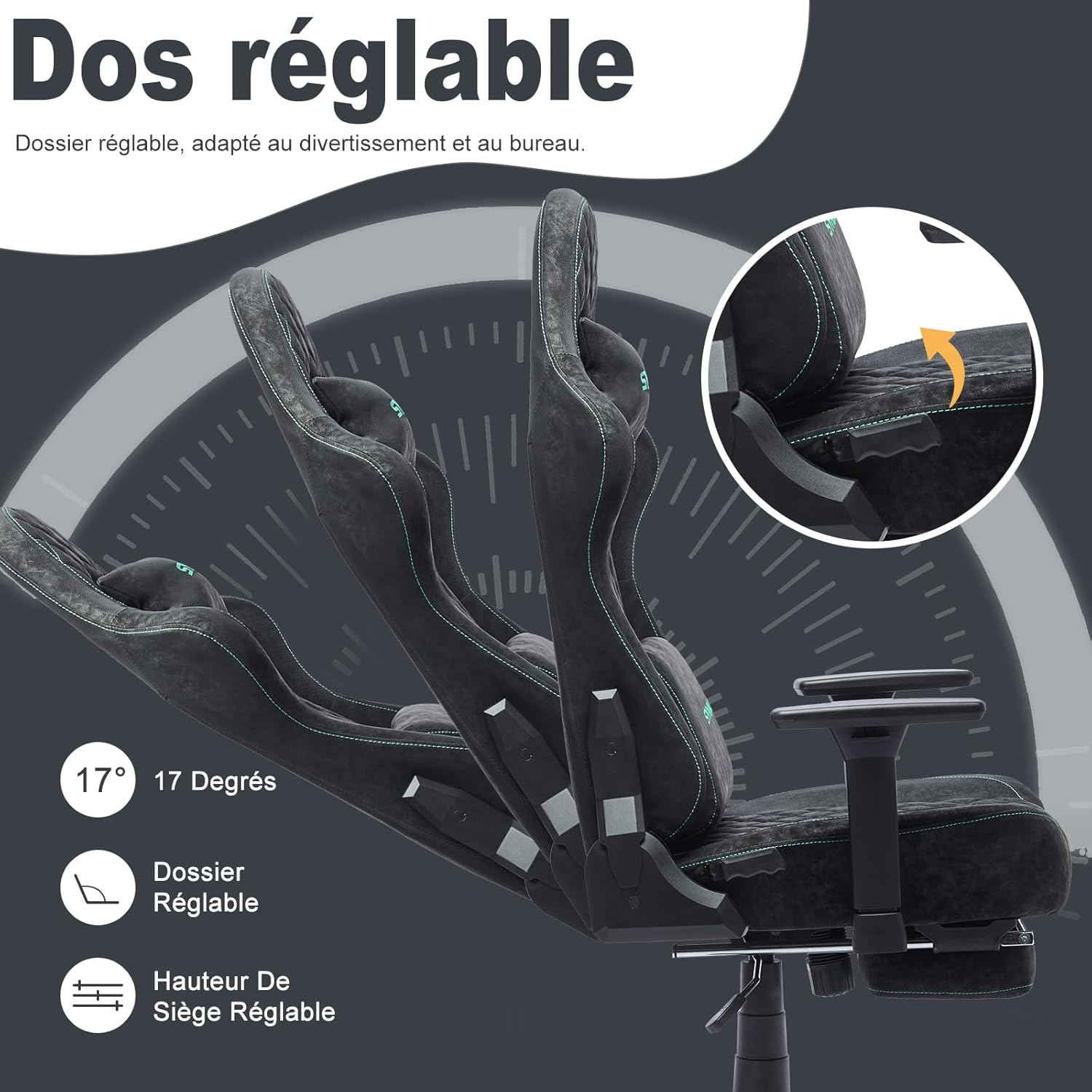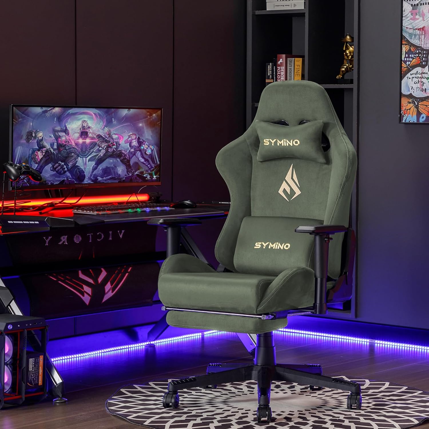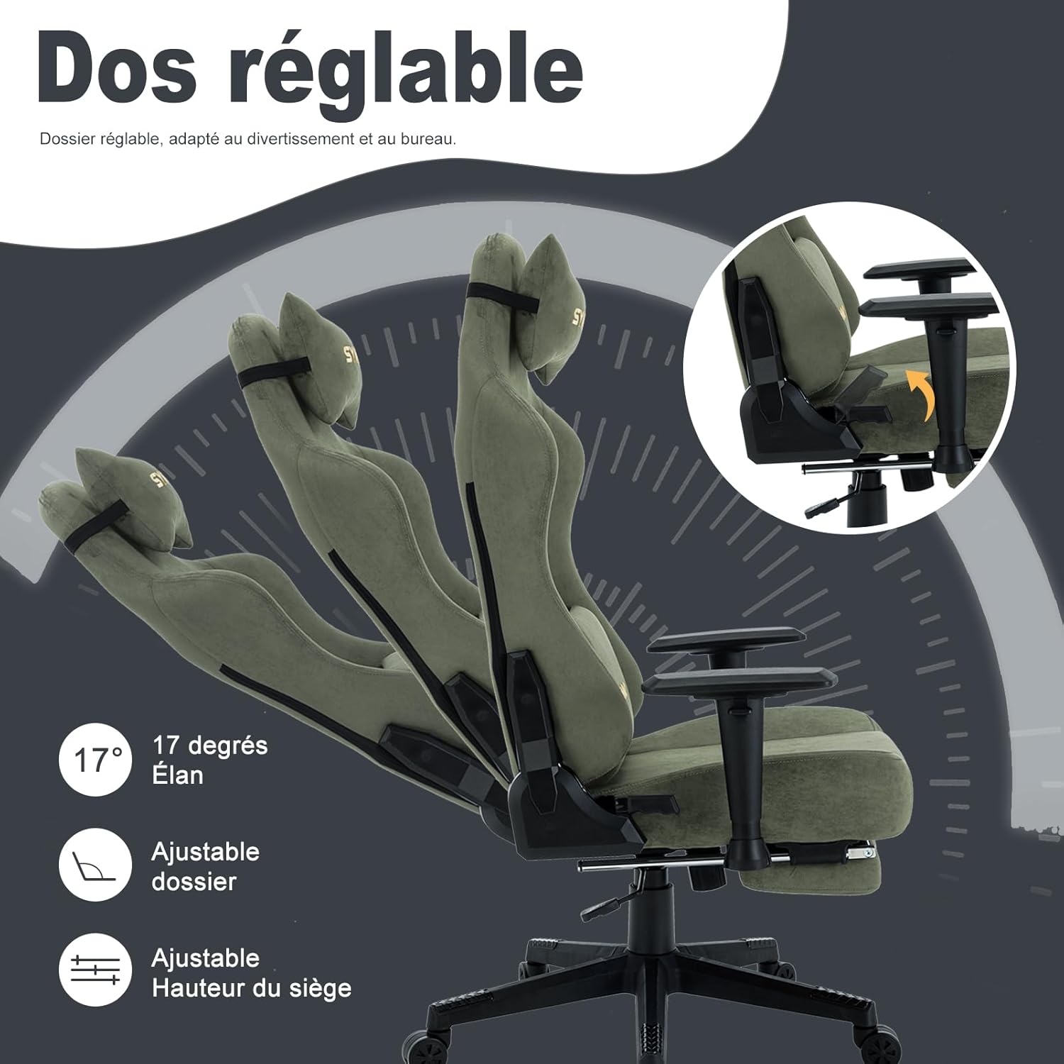 Chaise Gaming Symino – Ergonomique avec Repose-Pieds, Dossier Inclinable, Accoudoirs Ajustables, Cuir PU, Coussin Lombaire & Têtière